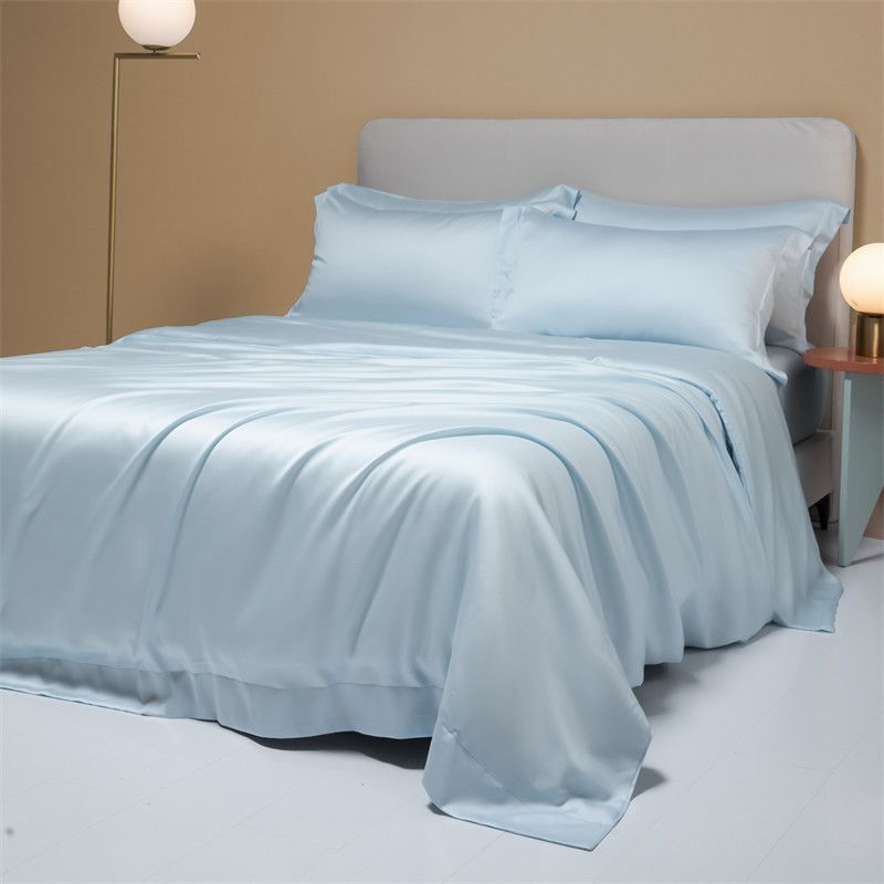200 Luxury Lenzing Tencel Quilt Sheets Set Of Four Baby Blue 1.2 Bed flat sheet 3 pieces