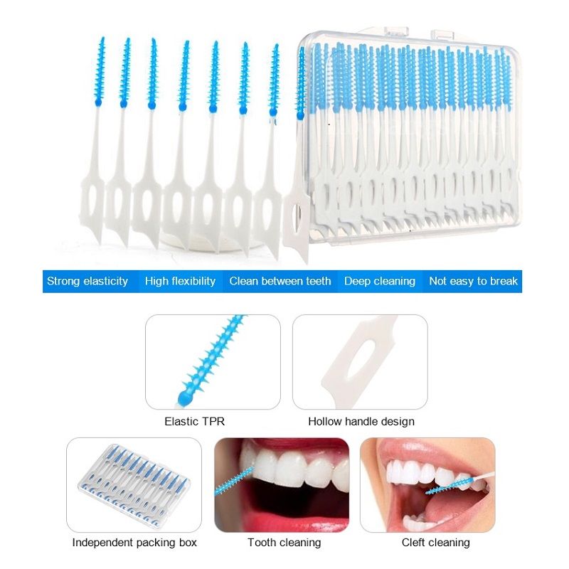 200 pcs/box Silicone Interdental Brushes Super Soft Dental Cleaning Brush Teeth Cleaner Dental Floss Toothpicks Oral Care Tools