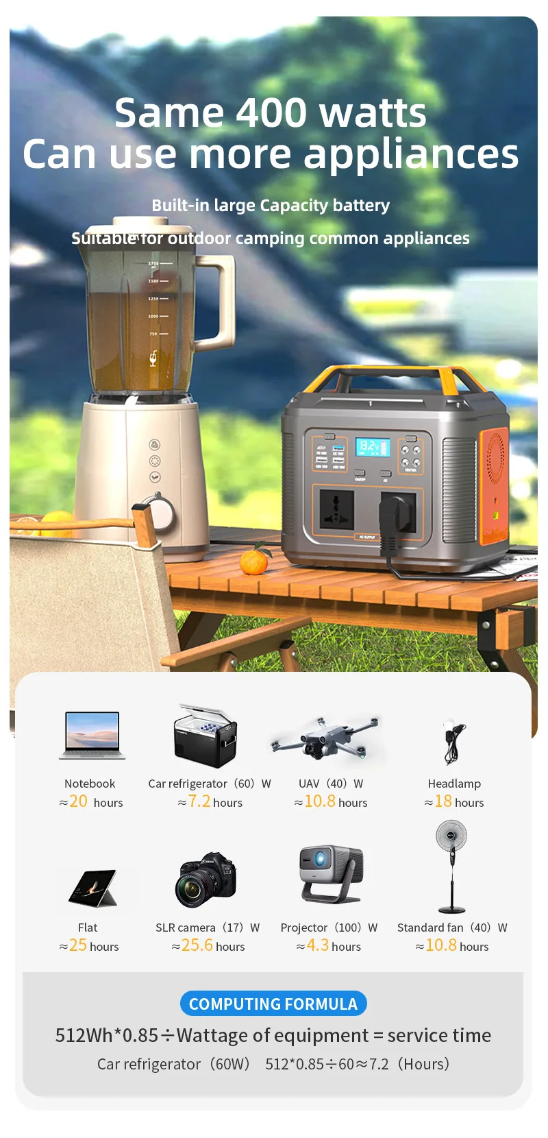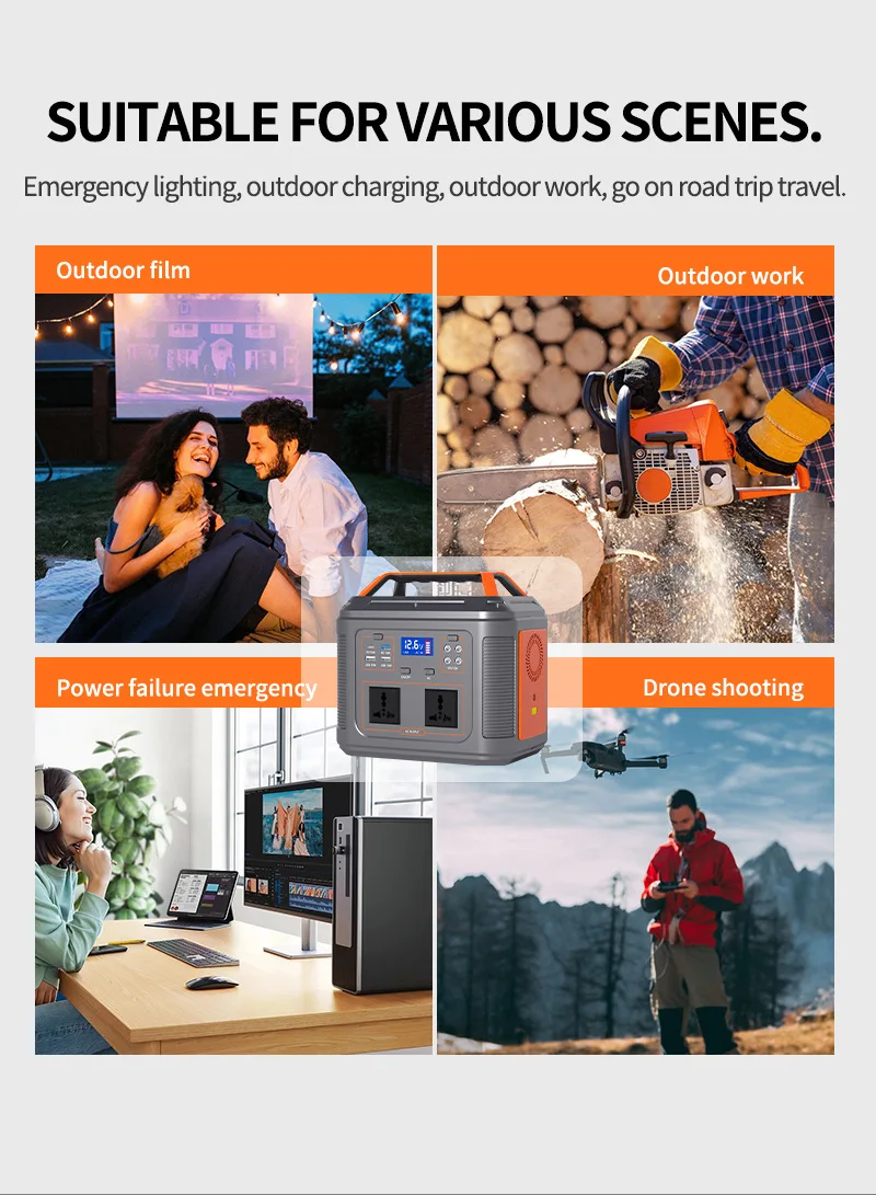 outdoor camping(lighting fan projection soundbox charging, etc.); self-driving tour; aerial photography(camera/drone charging, outdoor photography fill light); RV companion(lighting fan projection soundbox charging, etc.); emergency backup(family/company/dormitory power outage emergency lighting); outdoor work(maintenance emergency rescue security outdoor electricity)