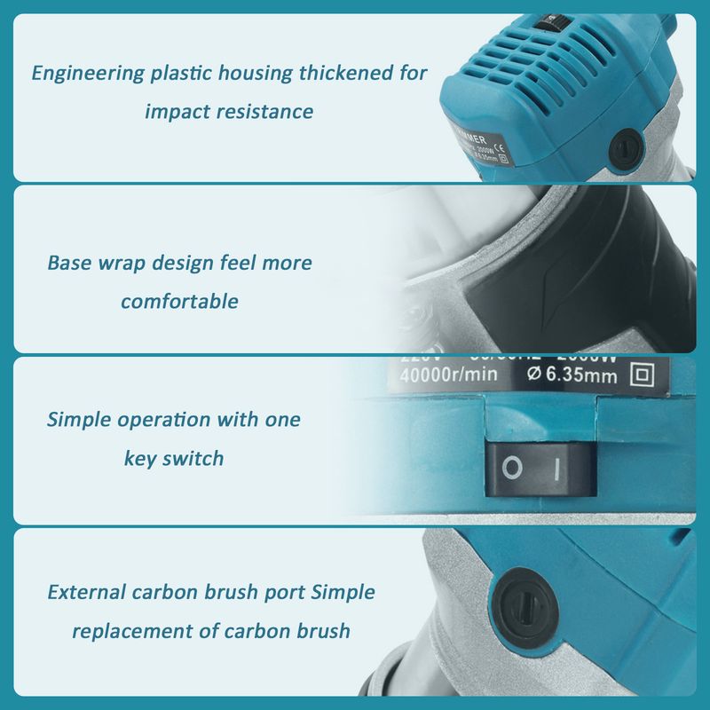 -Suitable for chamfering, grooving, surface treatment, curve cutting, planing edges, and pattern processing activities of wood, plastic cloth, wood veneer, and other similar materials.