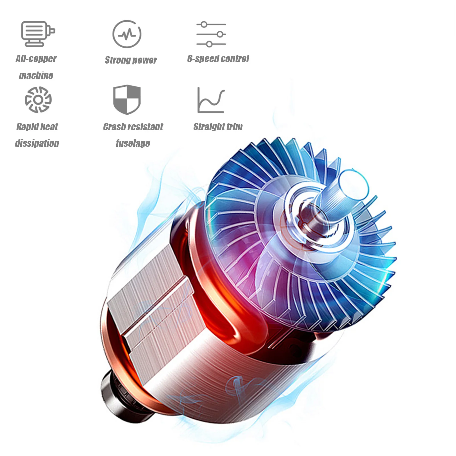 -Equipped with 6.35mm and 8mm collets, it can be used in conjunction with different tools. Wider application.