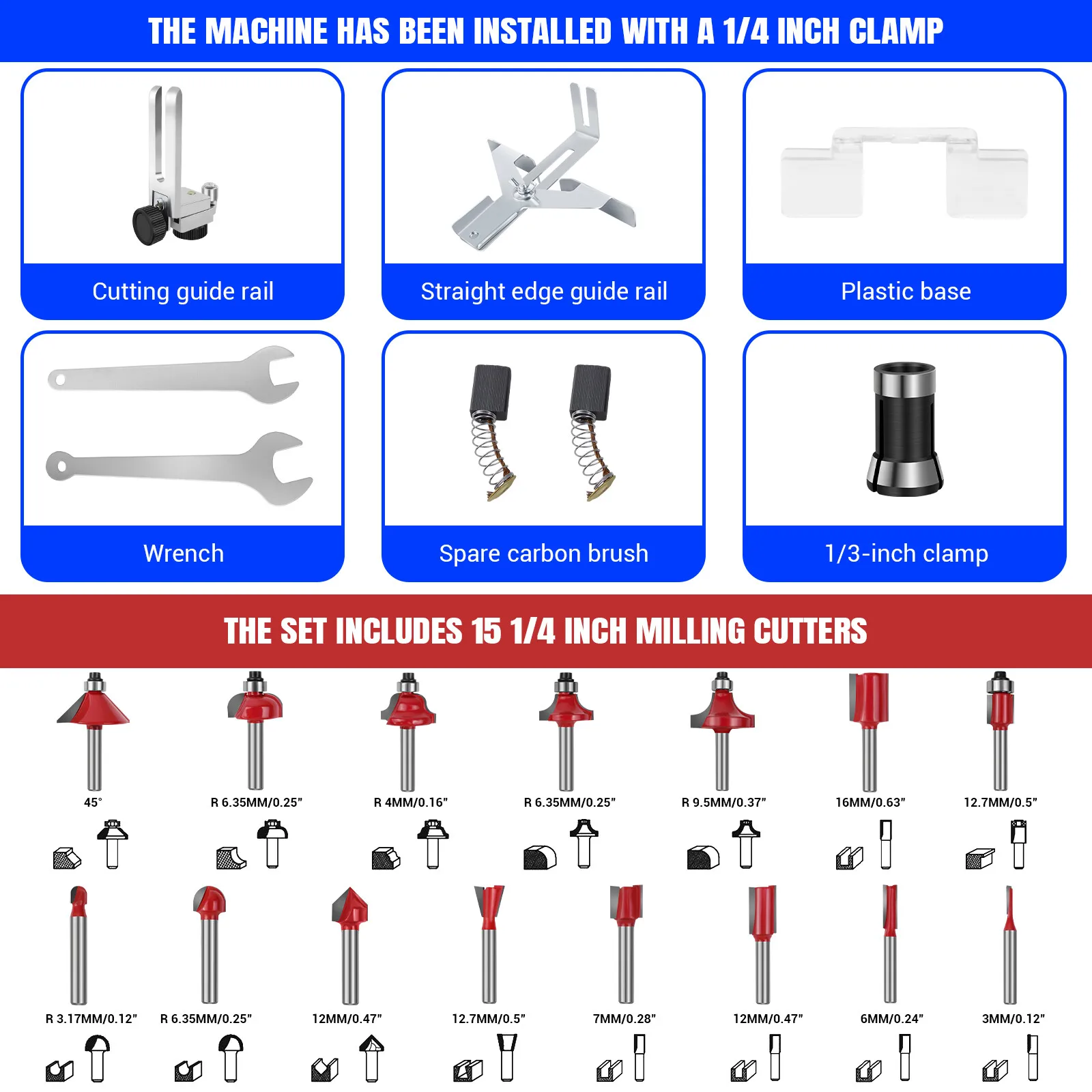 ✔️ 1/4 inch milling cutter *15