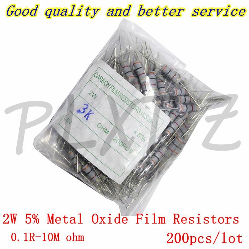 200pcs 2W Metal oxide film Resistor 5% 1R ~ 10M 100R 220R 330R 1K 2.2K 3.3K 4.7K 10K 22K 47K 100K 1M 100 220 330 ohm Carbon Film
