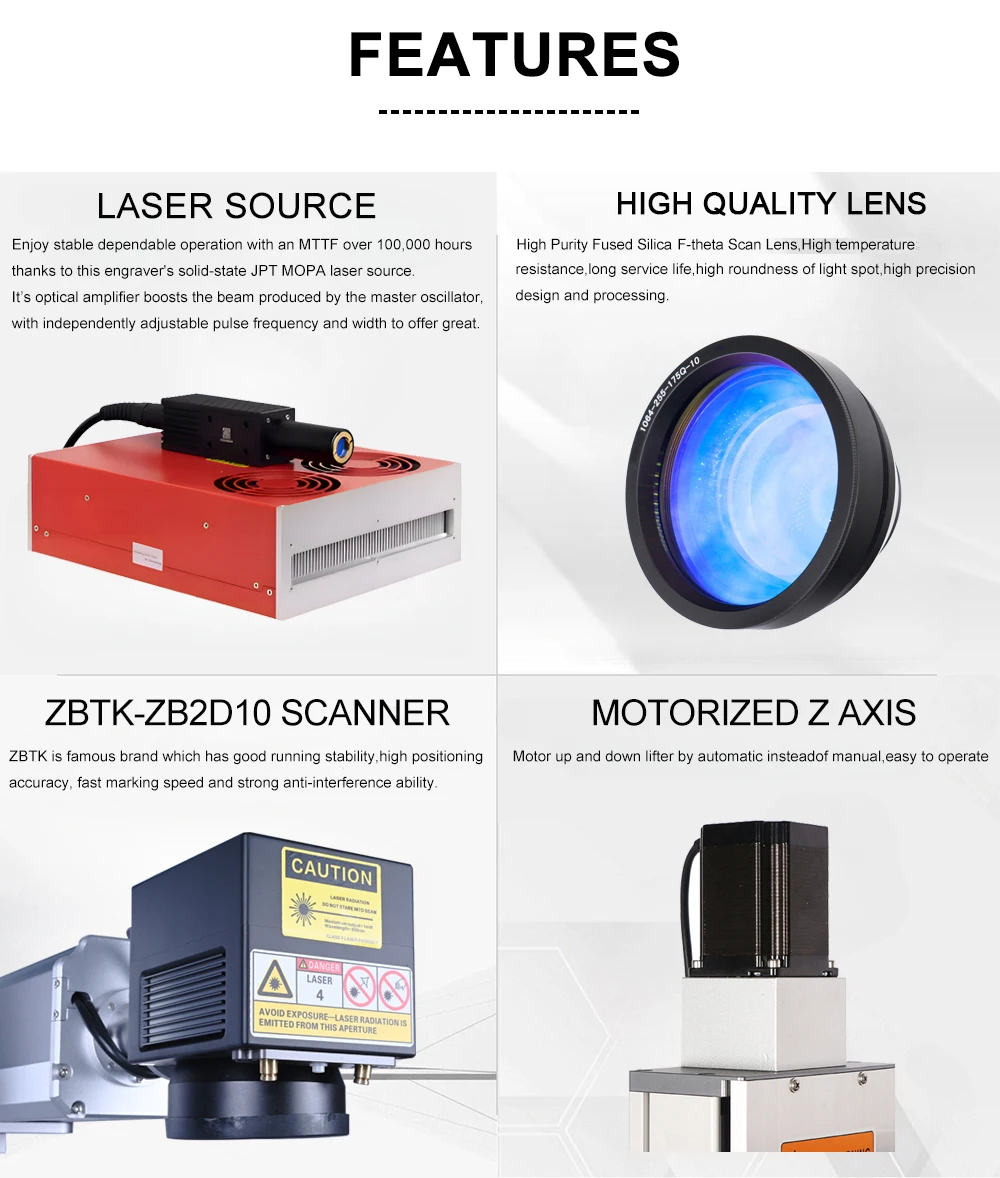 200W JPT MOPA M7 Galvo Fiber Laser Marking Machine For Gold Silver Metal Engraving Cutting 500mm 800mm Lifting Column