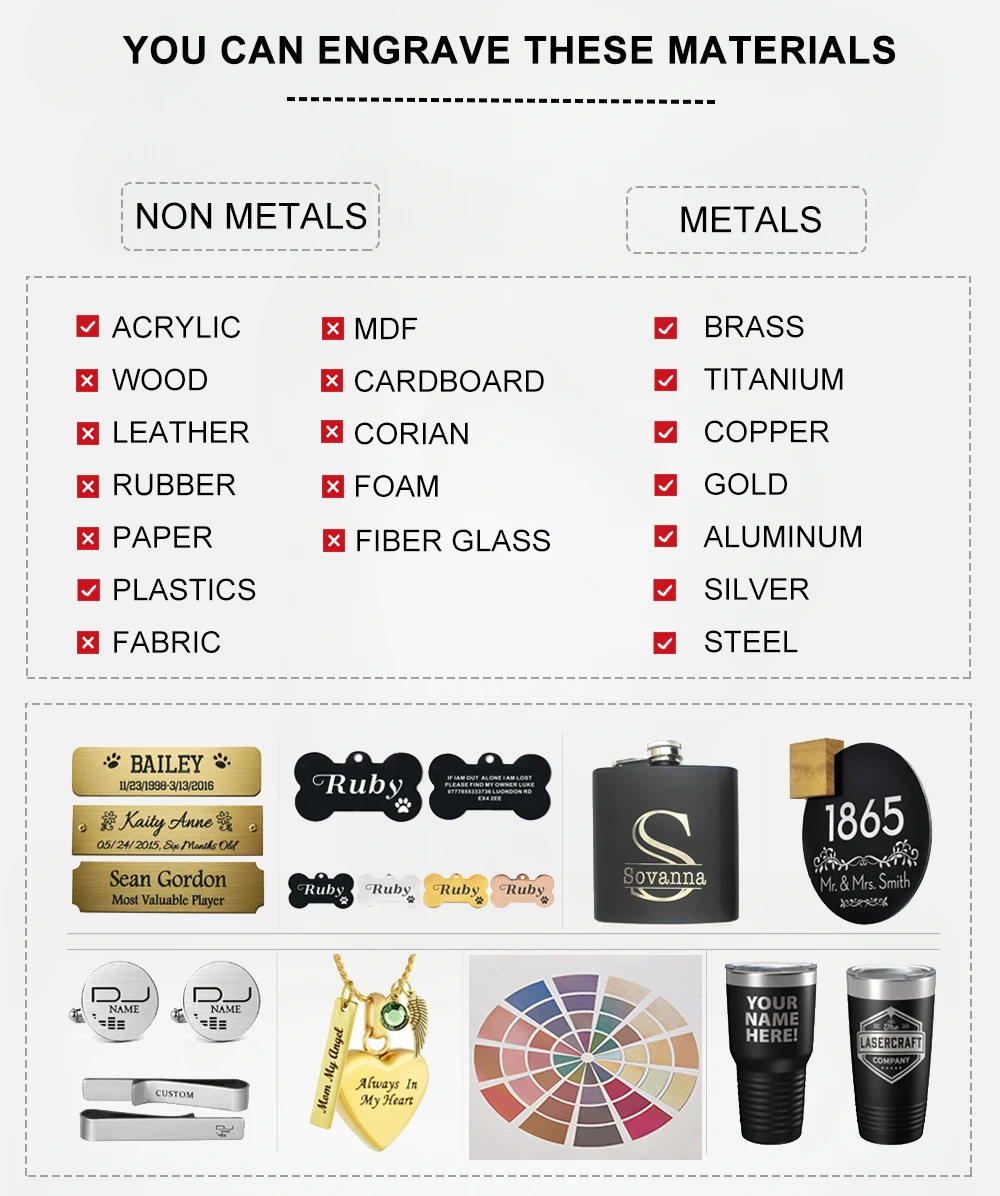Mopa (Anodized Aluminum Black Marking; Stainless Steel Color Marking, deep engraving)