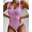 2021 New Sexy One Piece Swimsuit Women Ruffle Swimwear Bodysuit Swimsuit Push Up Monokini Solid Bathing Suits Summer Beach Wear Purple 2XL