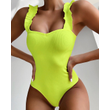 2021 New Sexy One Piece Swimsuit Women Ruffle Swimwear Bodysuit Swimsuit Push Up Monokini Solid Bathing Suits Summer Beach Wear Yellow 2XL