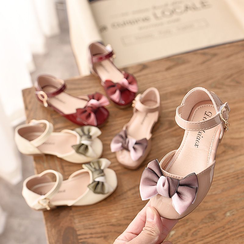 2021 spring new children's shoes girls soft bottom sandals bow princess shoes baby single shoes bag leather shoes Claret 22 yards 14 cm