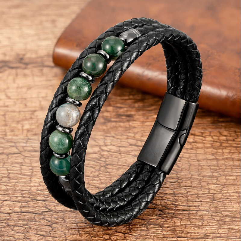 Material: Natural Stone+Leather+Stainless steel magnetic Clasp