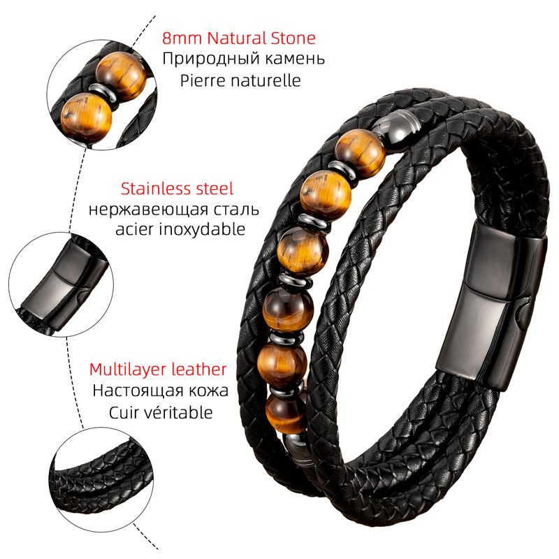 2021 Trendy Multilayer Leather Bracelets Men Jewelry 9 Style Round Stone 8mm Beaded Bracelets For Male Women Valentine Day Gifts