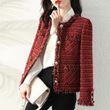 2023 Autumn New French High end Temperament Red Fragrant Coat Women's Short Thick Tweed OutwearFashion Women Slim Thicken Jacket