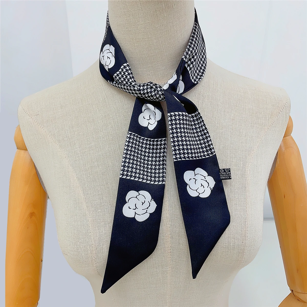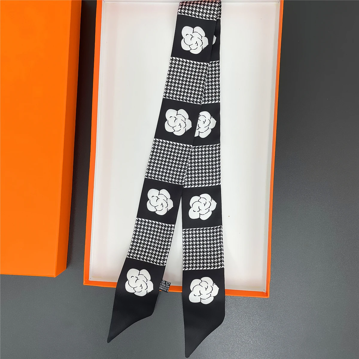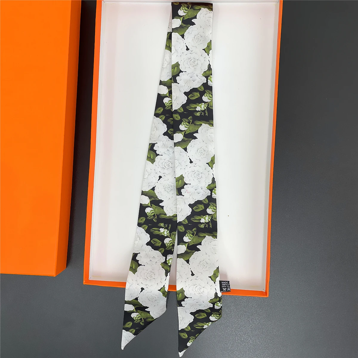 2023 Design Camellia Flower Brand Silk Scarf Luxury Scarf Women Foulard Skinny Bag Scarves Neckerchief Fashion Hair Headband