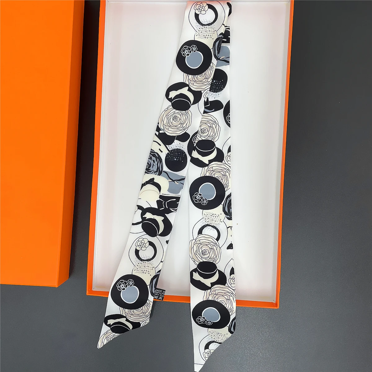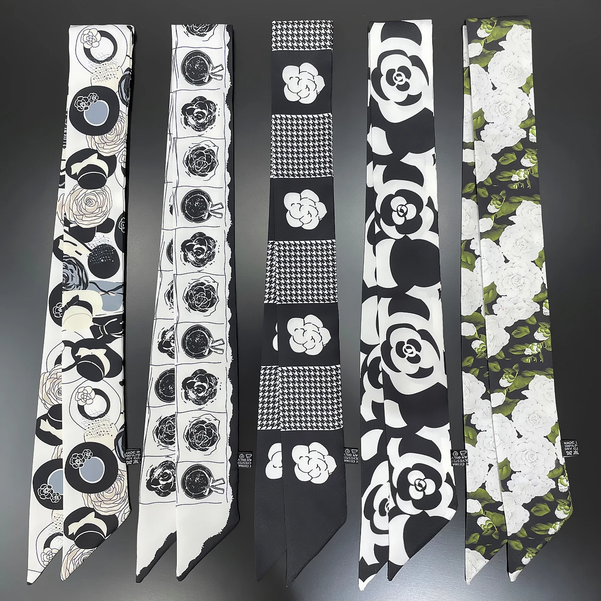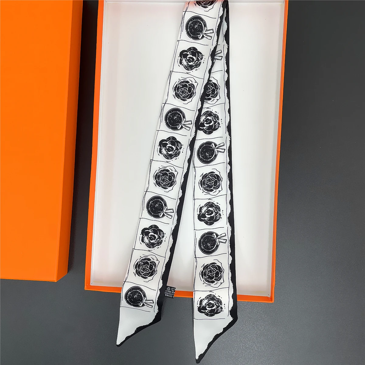 2023 Design Camellia Flower Brand Silk Scarf Luxury Scarf Women Foulard Skinny Bag Scarves Neckerchief Fashion Hair Headband