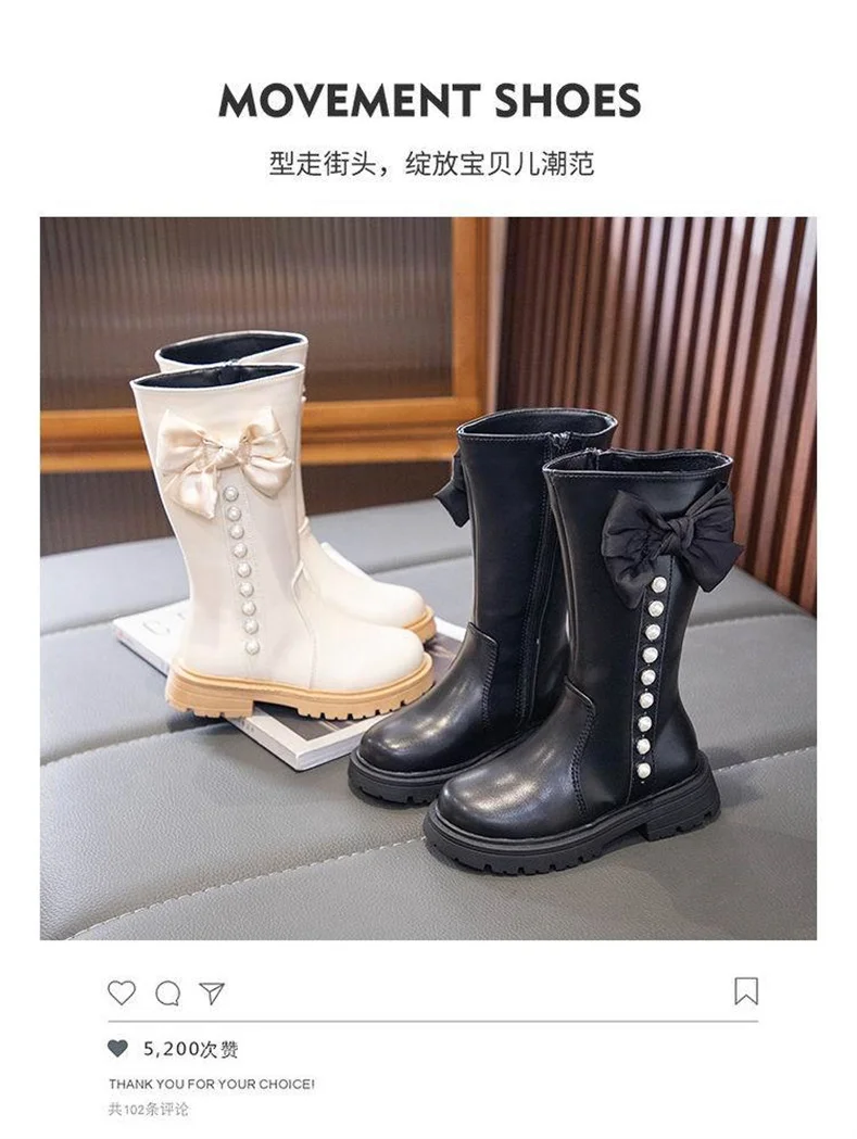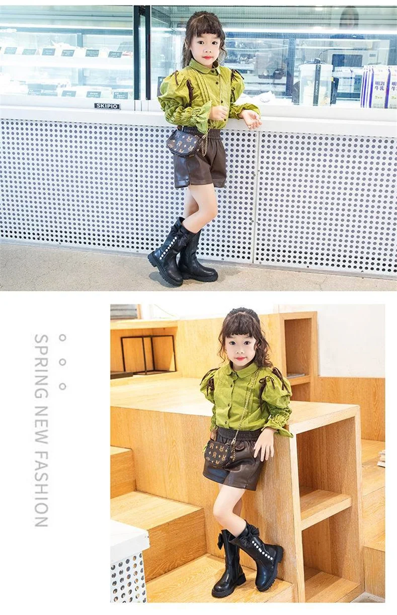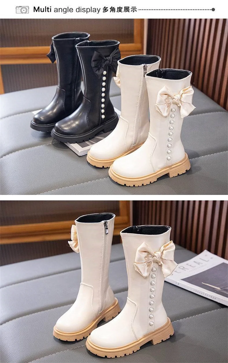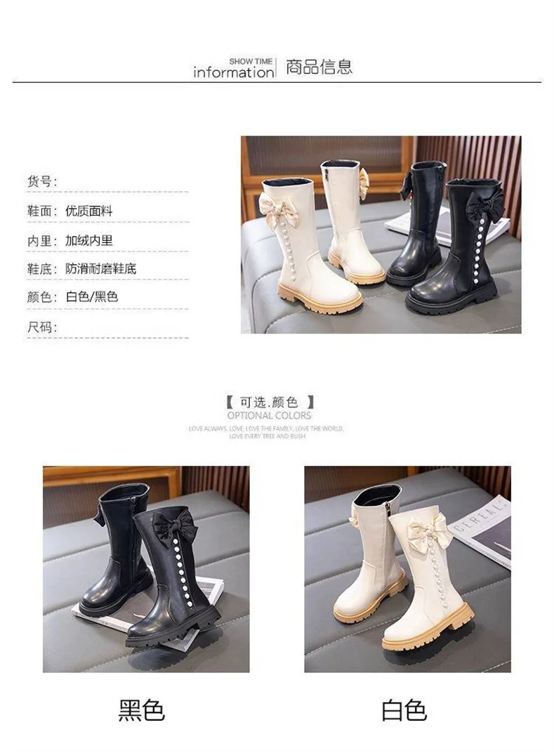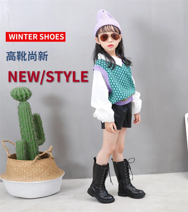 2023 New Girls High Boots Fashion Versatile Soft Princess Elegant PU Soft Chic Child Fashion Catwalk Boots