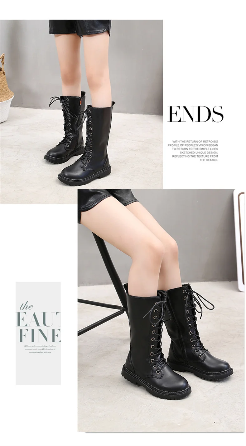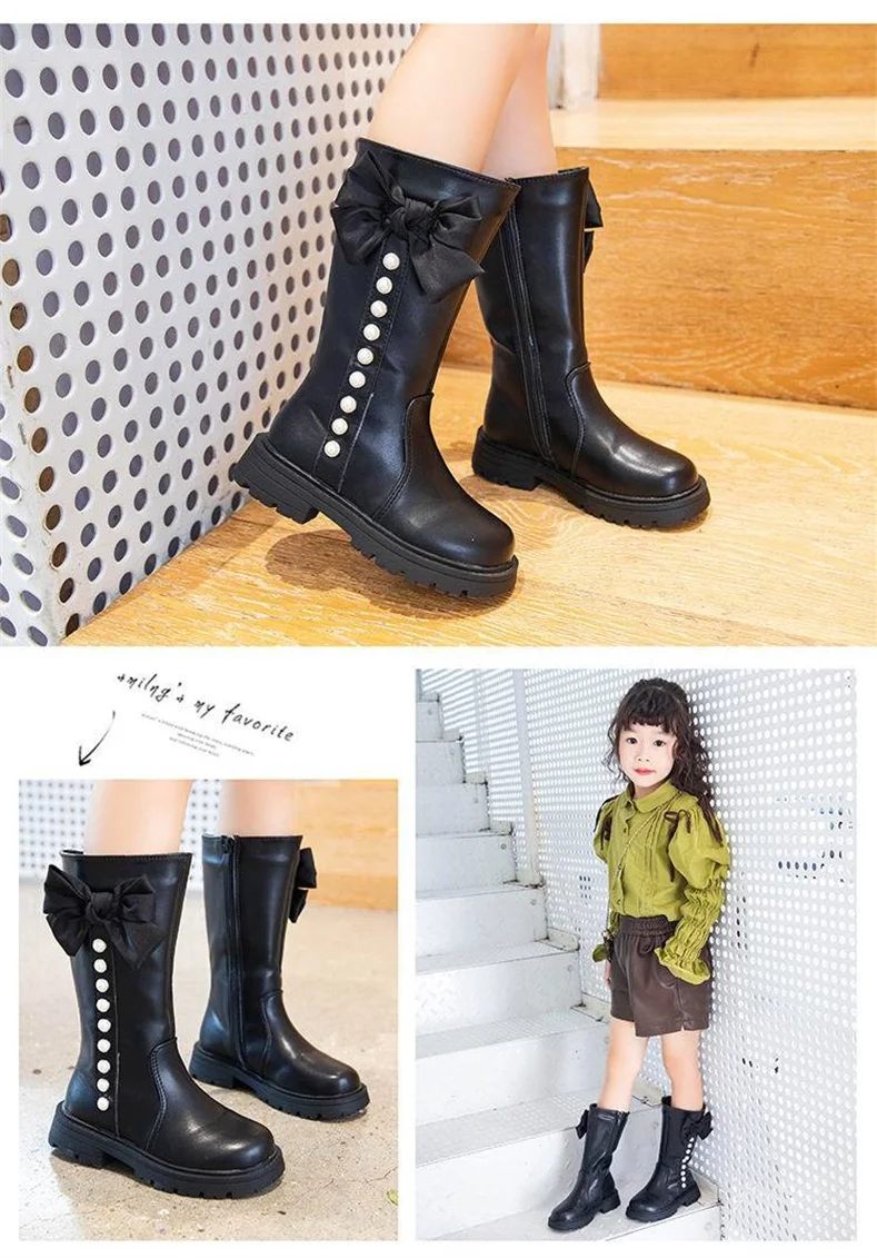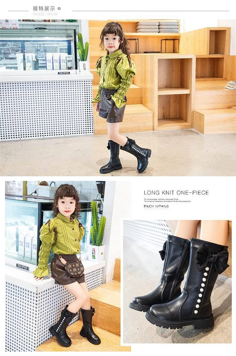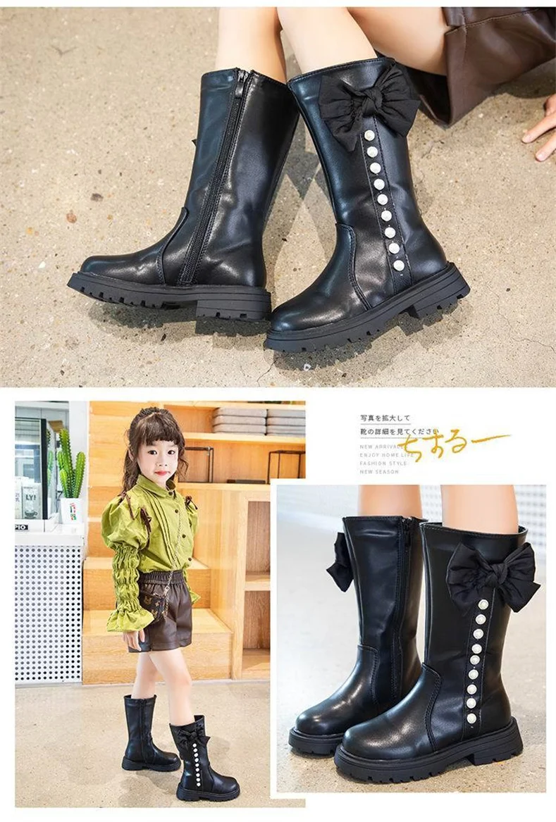 2023 New Girls High Boots Fashion Versatile Soft Princess Elegant PU Soft Chic Child Fashion Catwalk Boots