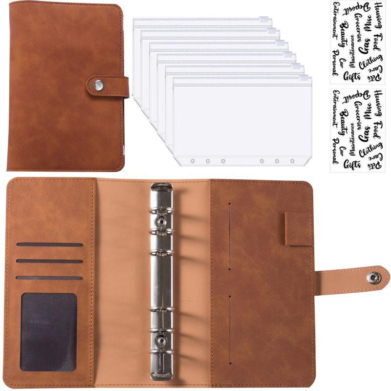 2024 A6 PU Leather Budget Binder Notebook Cash Envelopes System Set,with Binder Pockets for Money Budget Saving Bill Organizer