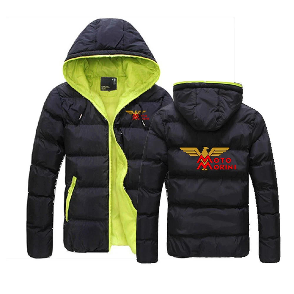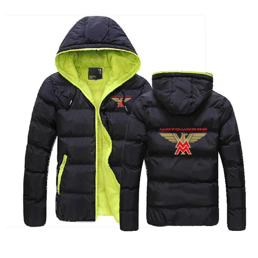 2024 Autumn Winter Men's Moto Morini Logo Printing Fashion Color Collision Design Cotton Liner Thicken Warm Hooded Cotton Jacket