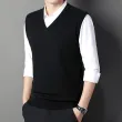 2024 Autumn Winter New Men's Solid Color V-neck Knitted Vest Casual Fashion Warm Sweater Versatile Top