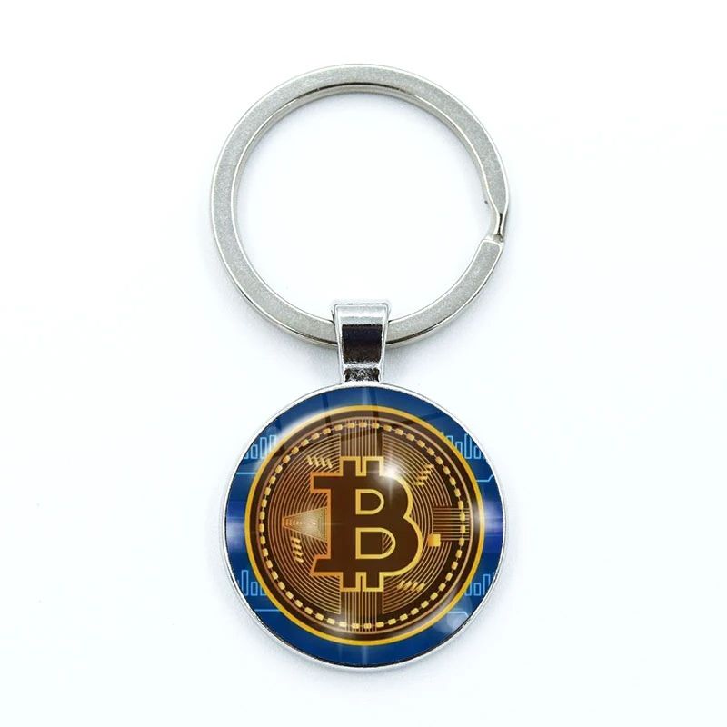 2024 Fashion Bitcoin Design Keychain Glass Cabochon Metal Pendant Classic Men's Women's Keychain Keyring Jewelry Gift Memorial