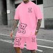 2024 Fun Bear Harajuku T-Shirt Men's Summer Loose Daily Couple Suit Outdoor Street Short Sleeve Shorts Two Piece Men Summer Suit