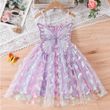 2024 Girls Purple Butterfly Dress Summer Children Colorful Mesh Dress Baby Sling Wings Princess Dress for Birthday 3-8T