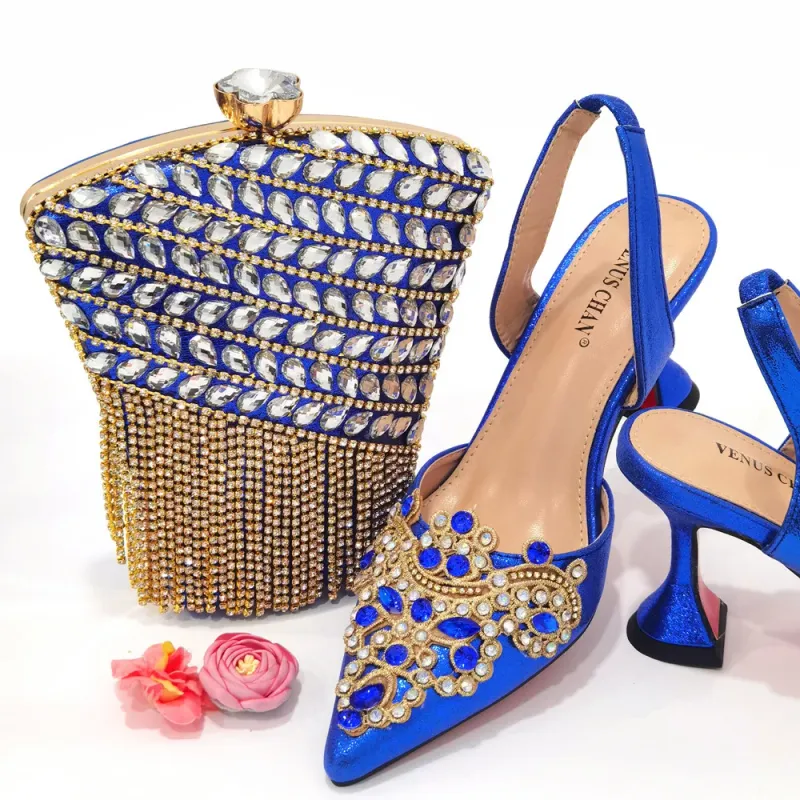 2024 Gold New Shoes For Women Designer Pointed-Toe Luxury Wedding Peach Color Hollowed Out Design Bag and Shoes Matching Set