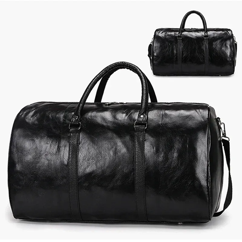 Leather Travel Bag Large Duffle Independent Big Fitness Bags Handbag Bag Luggage Shoulder Bag Black