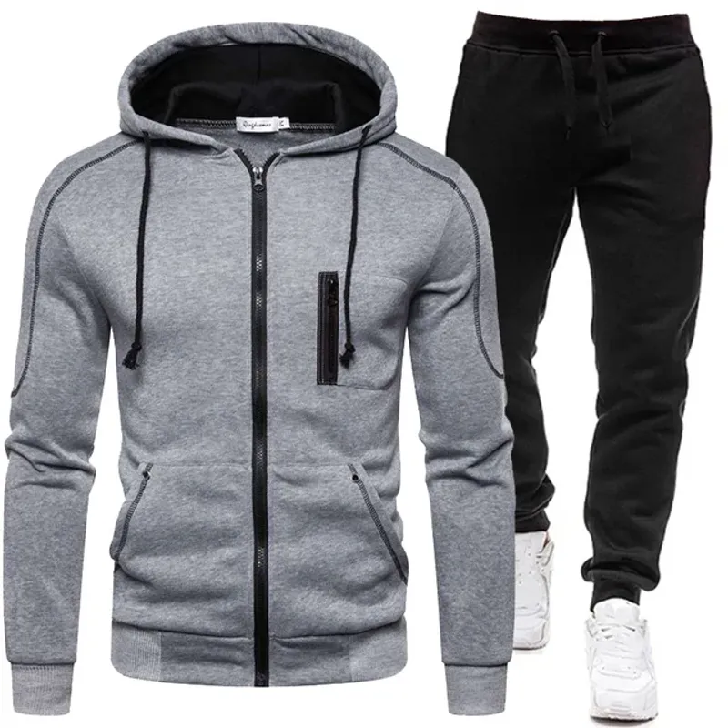 2024 Men Sets Wear Men's Fashion Autumn Winter Double Zipper Jacket/ Hoodie Pant Warm Tracksuit Sportwear Jogging Suits M-3XL