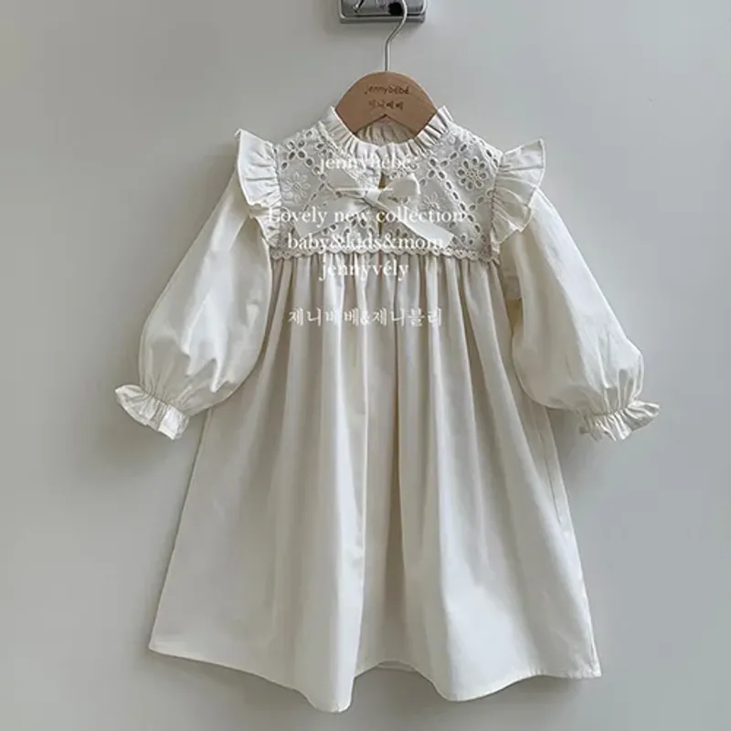 2024 New Autumn 2-6Yrs Girl Party Dress Long Sleeved Cotton Solid Color Kids Princess Dresses Baby Girl Romper Sister Dress