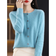 2024 New Chic Women's Basic O-neck Cardigan 100% Merino Wool Sweater Soft Grace Knitwear CoatSpring Autumn Female Clothes Tops