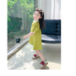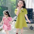 2024 New Children's Summer Dress Girl's Korean Edition love Bubble Sleeves Flip Collar Dress 1-12 Year Old Princess Dress