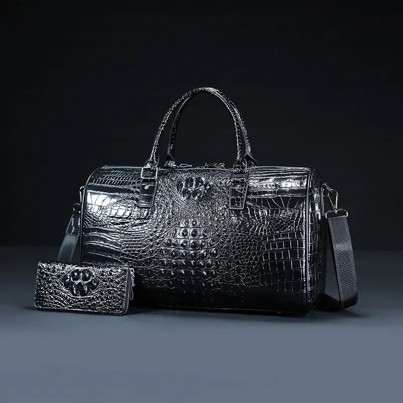 2024 New Cow Genuine Alligator Leather Travel Bags Luxury Men Large Capacity Portable Male Shoulder Bags Brand Travel Duffle Bag