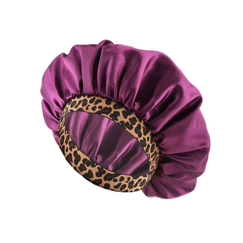 2024 New Fashion Satin Sleeping Hat Night Sleep Hair Care Bonnet Nightcap Popular Leopard Silk Wide-Brimmed Shower Cap