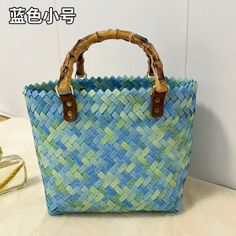 2024 New Handwoven Bamboo Handle Tote Bag Women's Retro Handbag Casual Simple Sle No oulder Strap Open Top Soft Bag