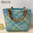 2024 New Handwoven Bamboo Handle Tote Bag Women's Retro Handbag Casual Simple Sle No oulder Strap Open Top Soft Bag