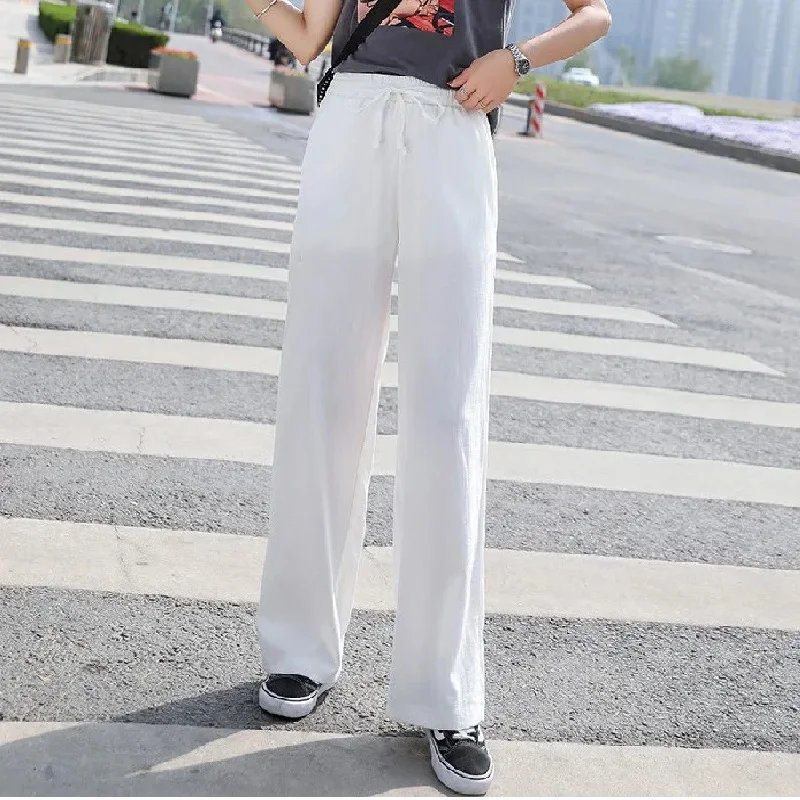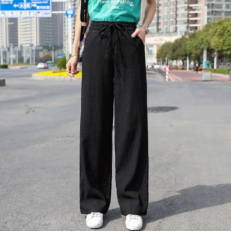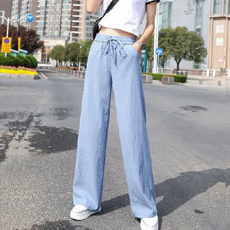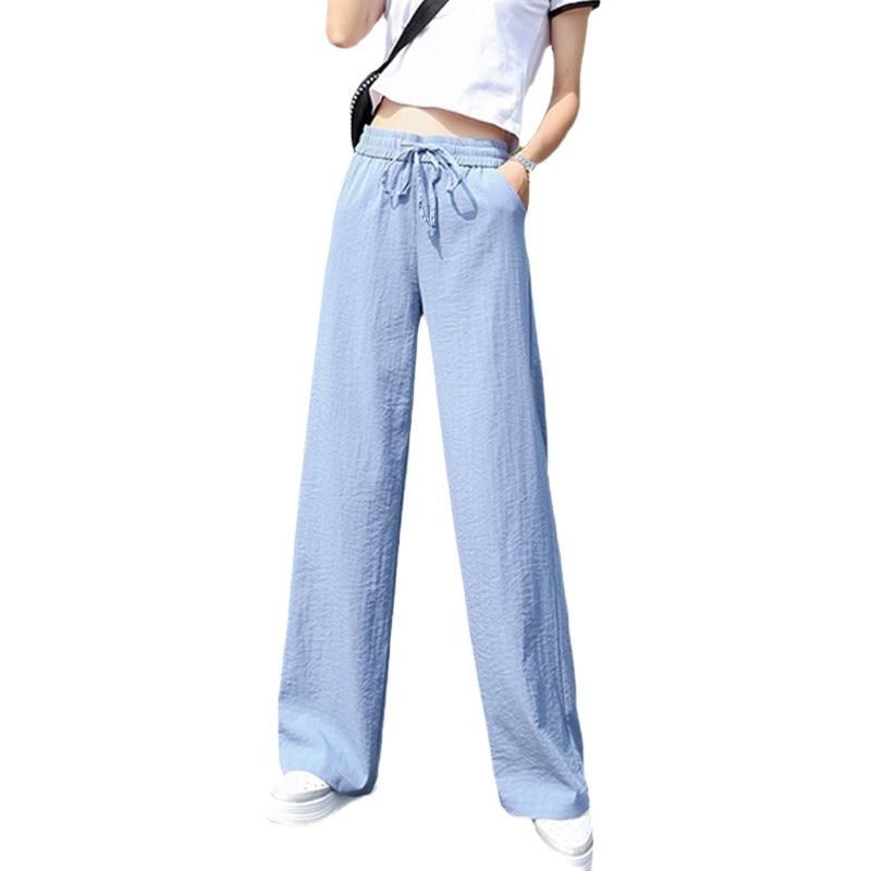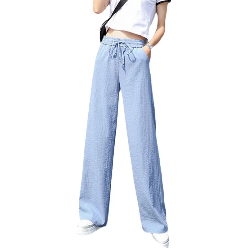2024 new spring and summer wide leg pants women's high waist ice silk pants thin thin mopping pants female student pants