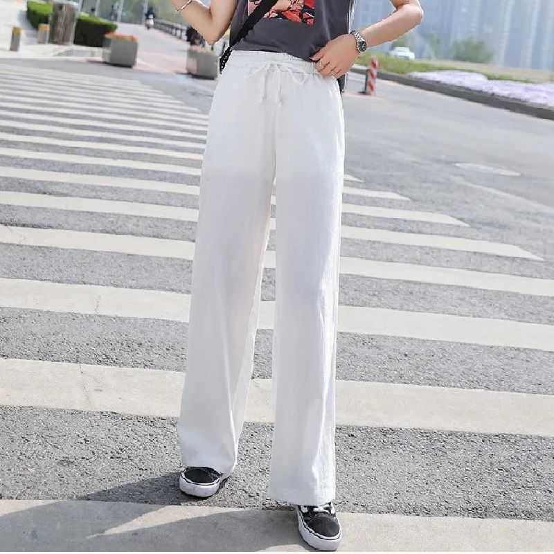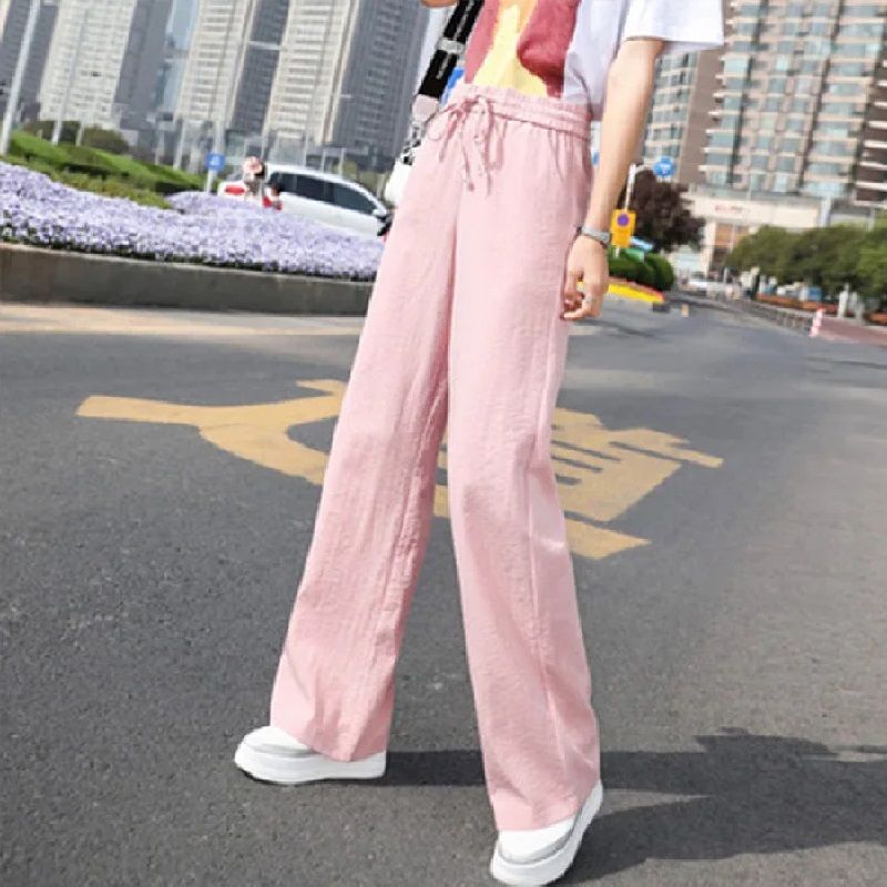 2024 new spring and summer wide leg pants women's high waist ice silk pants thin thin mopping pants female student pants
