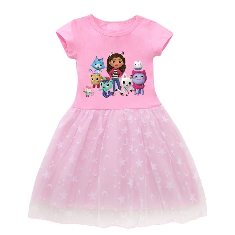 2024 New Summer Cartoon Gabby Cats Dresses Baby Girls Princess Dress Bag Headband Kids Gabby's Dollhouse Cosplay Costume