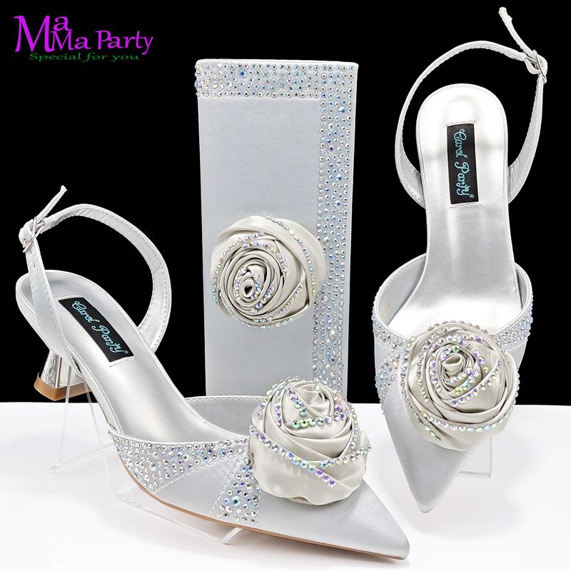 2024 Rose Design 2024 INS Hot Sale New Arrivals African Shoes and Bag Set in Olive Color Pointed Toe Comfortable Heels for Party
