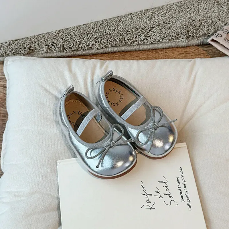 2024 Spring&Autumn Children's Little Leather Shoes for Girls Korean Girls' Soft Sole Bow Anti Slip Fashion Princess Single Shoes