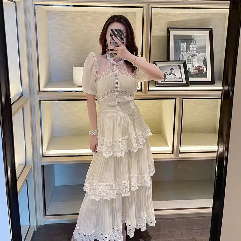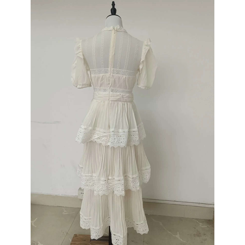 2024 Summer Fashion Layer Ruffles Cake Dress Women Flower Embroidery Lace Chiffon Dresses Female Prom Evening Party Night Luxury