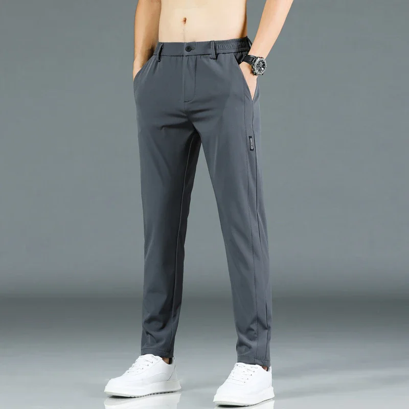 2024 Summer New Thin Ice Silk Stretch Men's Pants Casual Elastic Waist Smooth Trouser Pants Male Brand Clothing 5 Colour