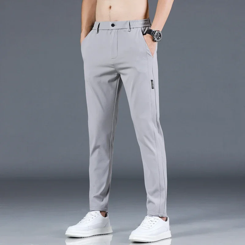 2024 Summer New Thin Ice Silk Stretch Men's Pants Casual Elastic Waist Smooth Trouser Pants Male Brand Clothing 5 Colour
