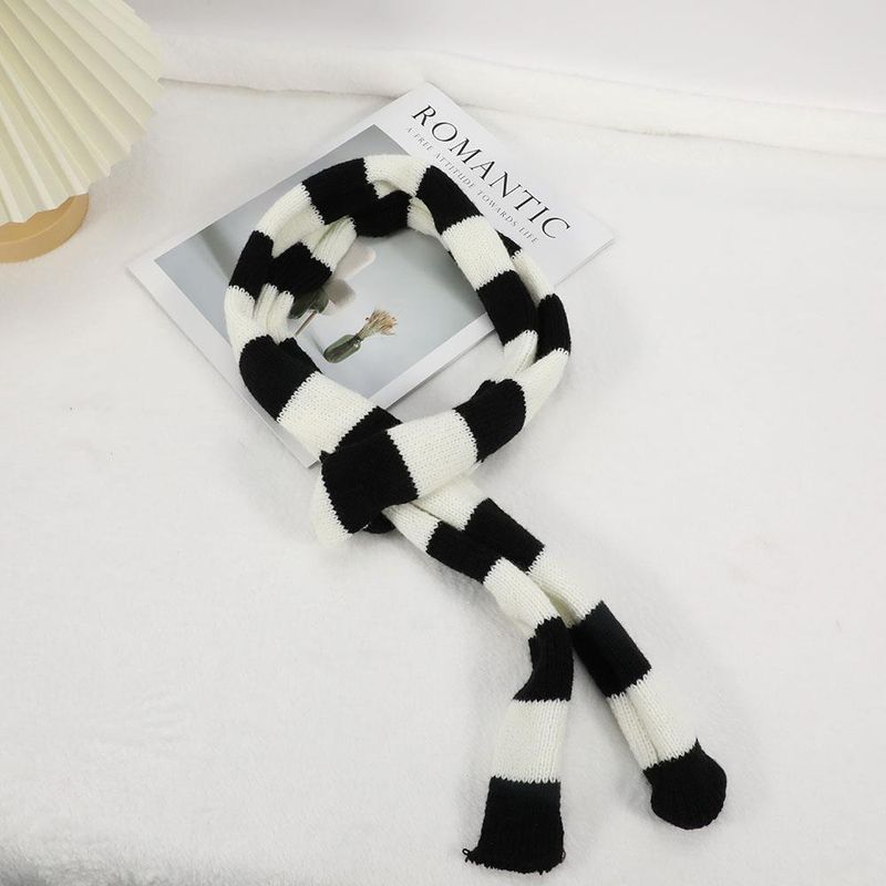 2024 Women Harajuku Cotton Scarves Y2k Black Grey Stripe Long Scarves 180cm Thin Long Decorative Neckerchief Fashion Streetwear