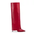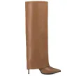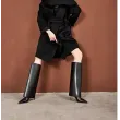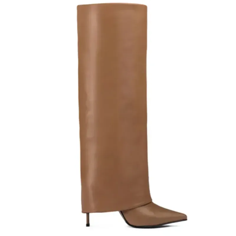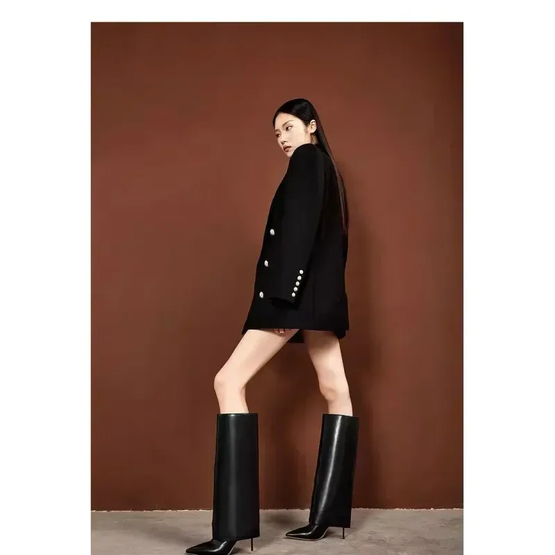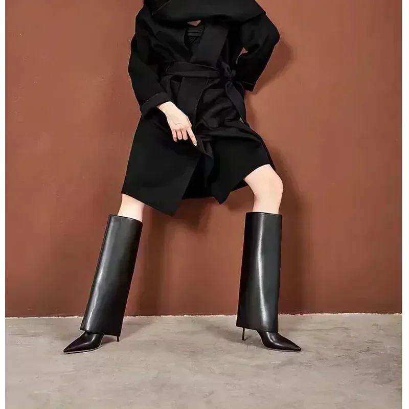 2024European and American Women's Knee High Leather Boots, Pointed Slim High-heeled Skirt Boots, Black Plus Size Long Boots