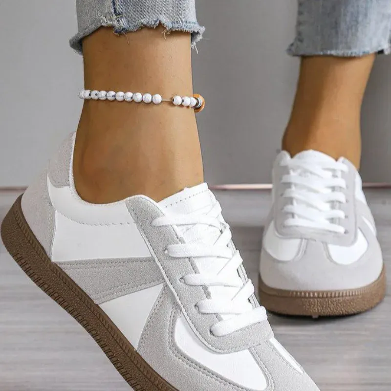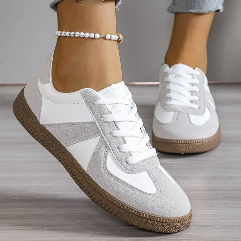 2025 autumn new flat sports shoes for women fashionable mixed color lace up vulcanized shoes comfortable casual shoes