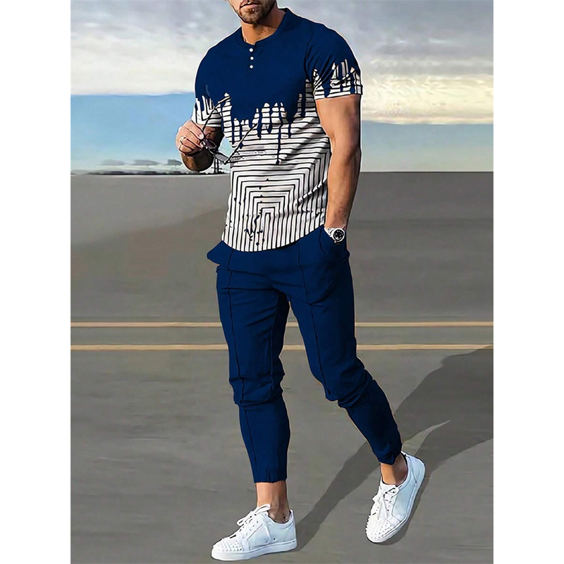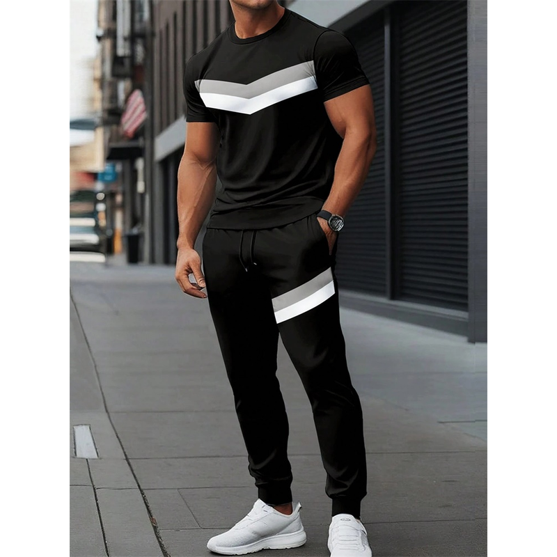 2025 Autumn Slim Men's Casual 2pcs Set, Urban Street Fashion Men's Short-sleeved Top And Casual Pocket Long Pants S-3XL