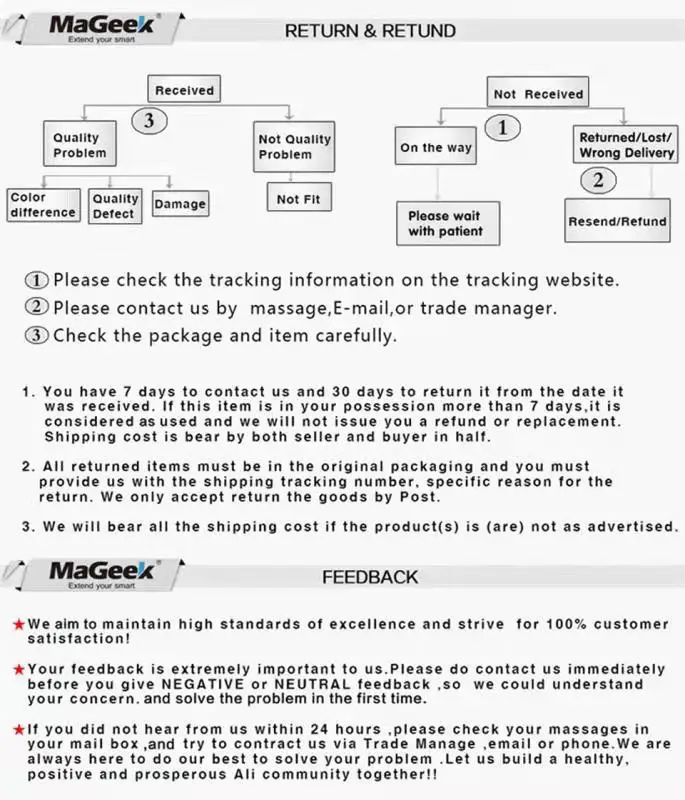 If you receive a damaged, defective, or incorrect item, please contact us within 7 days of delivery and provide clear photos of the product and packaging. We will arrange a replacement or full refund at no additional cost.