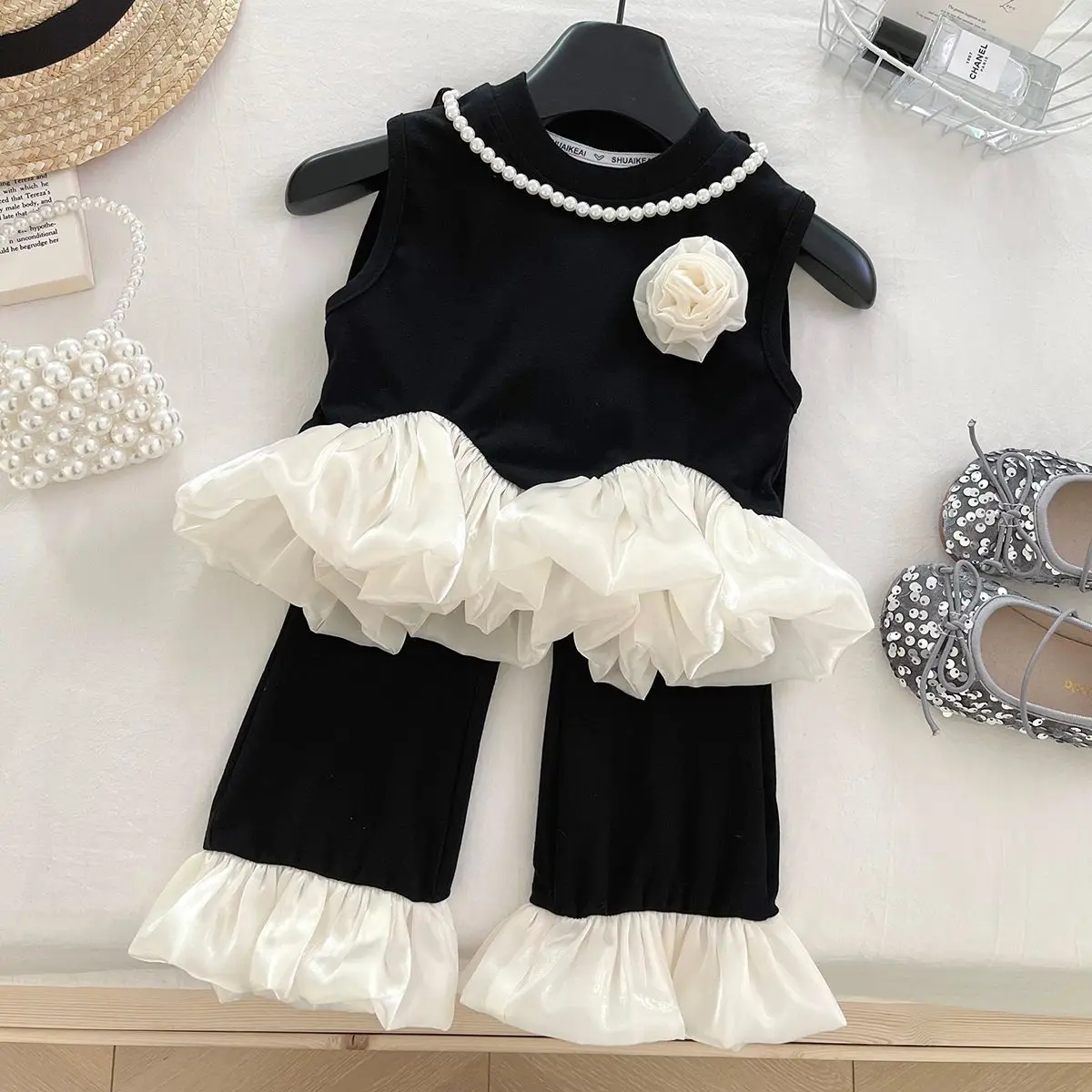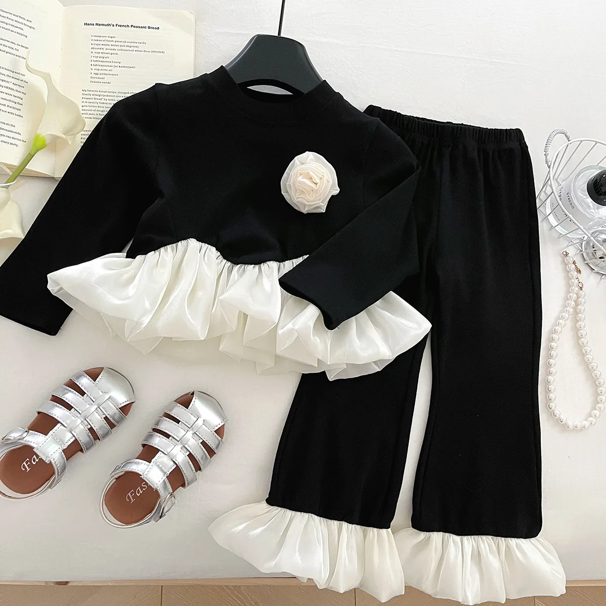 2025 Baby Girls Summer Clothing Set 3D flower ruffles T Shirts+pants,Fashion Kids Children Brithday Princess Clothes 소녀 세트