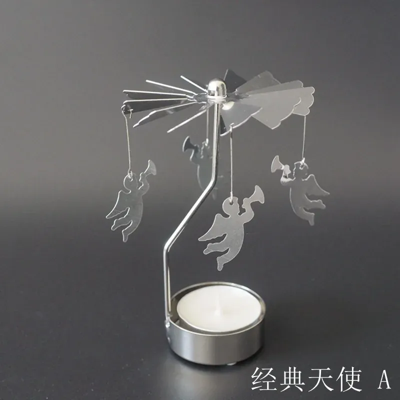 Spinning Rotary Metal Carousel Tea Light Candle Holder Stand Light Xmas Gift Candelabra Christmas Decorations for Home Features: